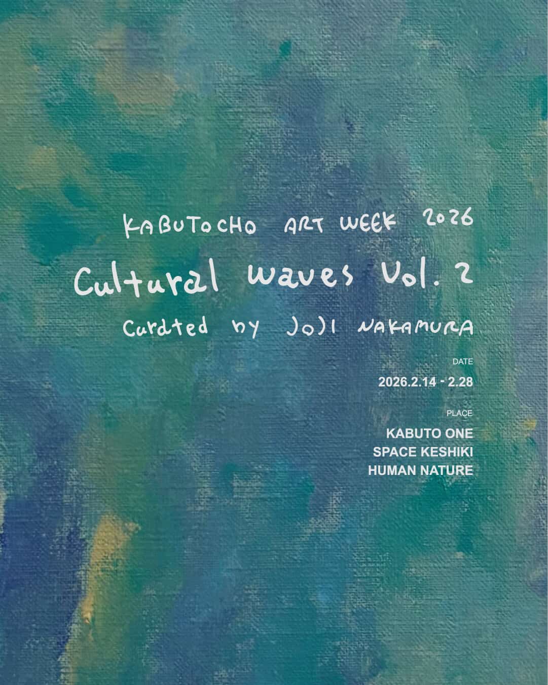 日本橋兜町を舞台にしたアートを中心とする回遊型エキシビション“Kabutocho Art Week 2026 -Cultural Waves-”。アートや音楽、食など様々な文化的要素が押し寄せ、混ざる交流を求め、新たな価値観の気づきや創造を主眼とし、第2回は画家・JOJI NAKAMURAがメインキュレーターとなり、交友のあるアーティスト総勢23名の作品が参集します。