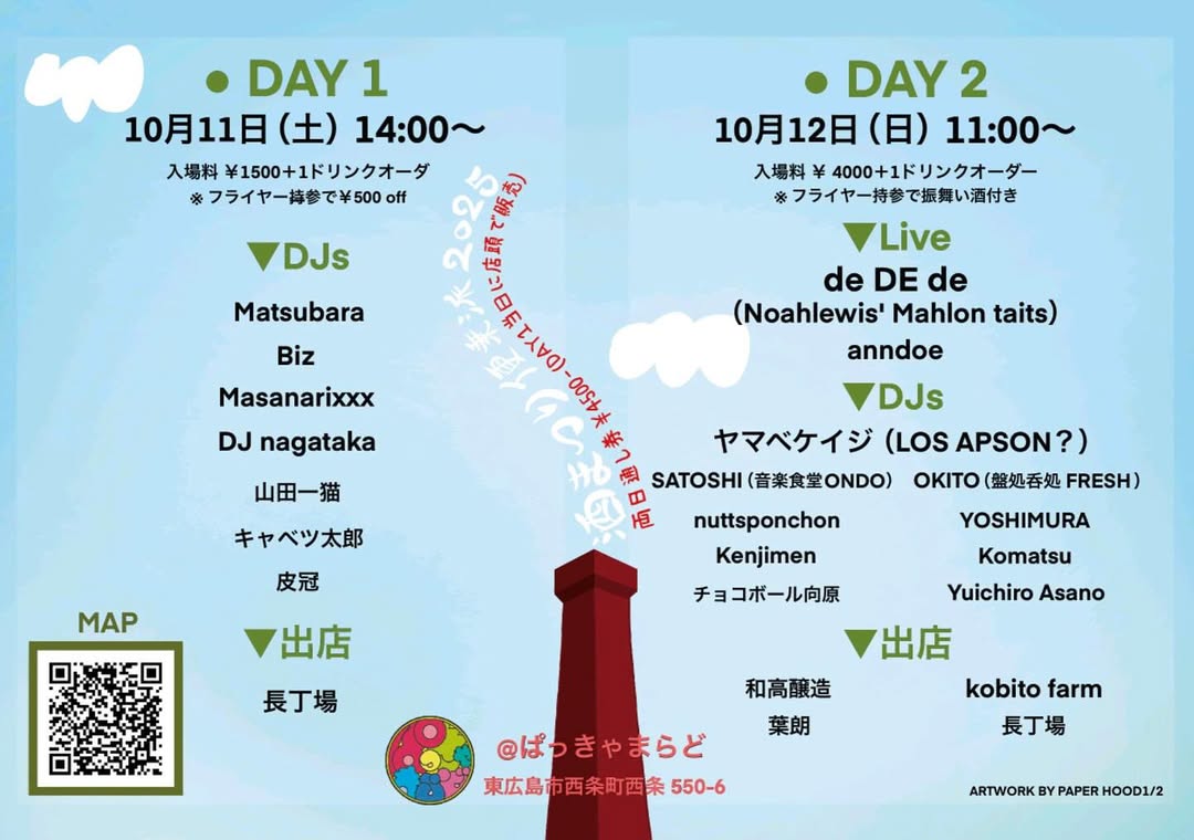 日本三大酒処である広島県東広島市西条に、日本全国の酒が集まる一大イベント「酒まつり」に連動?便乗?して、住宅街にある一軒家を改装した駄菓子屋でありバーでもある〈ぱっきゃまらど〉さんにて毎年開催されている「酒まつり便乗派」に、広島の葉朗くんからのお誘いを受けてヤマベもDJで参加します!