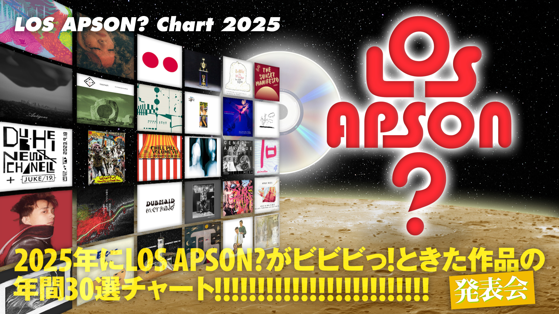 2025年12月30日(火)に、幡ヶ谷FORESTLIMITにて「2025年にLOS APSON?がビビビっ!ときた作品の年間30選チャート!!!!!!!!!!!!!!!!!!!!!!!!! 発表会」を開催いたします!今回のベストに選んだ作品をFORESTLIMITのサウンドシステムで大音量でプレイしながら、ゲスト等も交えて解説トーク!今回もDJタイム有り!当店の今年の仕事納め&忘年会も兼ねておりますので、ぜひとも会場までお越し下さい!!!(※詳細はこちら!)